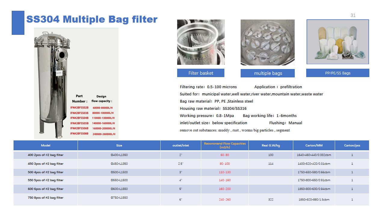 #2 bag filter /5bag/Stainless Steel 304 Multi Bag Filter OEM/ODM